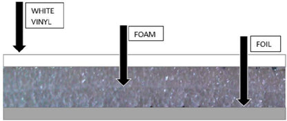 - One layer closed-cell foam bonded between two layers (1 layer of highly reflective metalized aluminum polyester film and 1 layer of durable textured white vinyl facing). Industrialized strength, lightweight yet durable insulation designed to hold staples without tearing. Does not compress, collapse or disintegrate. Reflects 97% of radiant heat, emits less than 3% of heat, Class 1 / Class A fire rated radiant barrier that has passed the ASTM E84 test & ASTM E2599