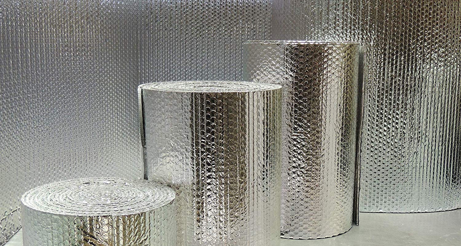 Two layers of polyethylene industrialized air bubbles bonded between two layers of highly reflective metalized aluminum polyester film. Industrialized strength, lightweight yet durable insulation designed to hold staples without tearing. Does not compress, collapse or disintegrate. Reflects 97% of radiant heat, emits less than 3% of heat, Class 1 / Class A fire rated radiant barrier that has passed the ASTM E84 test & ASTM E2599.